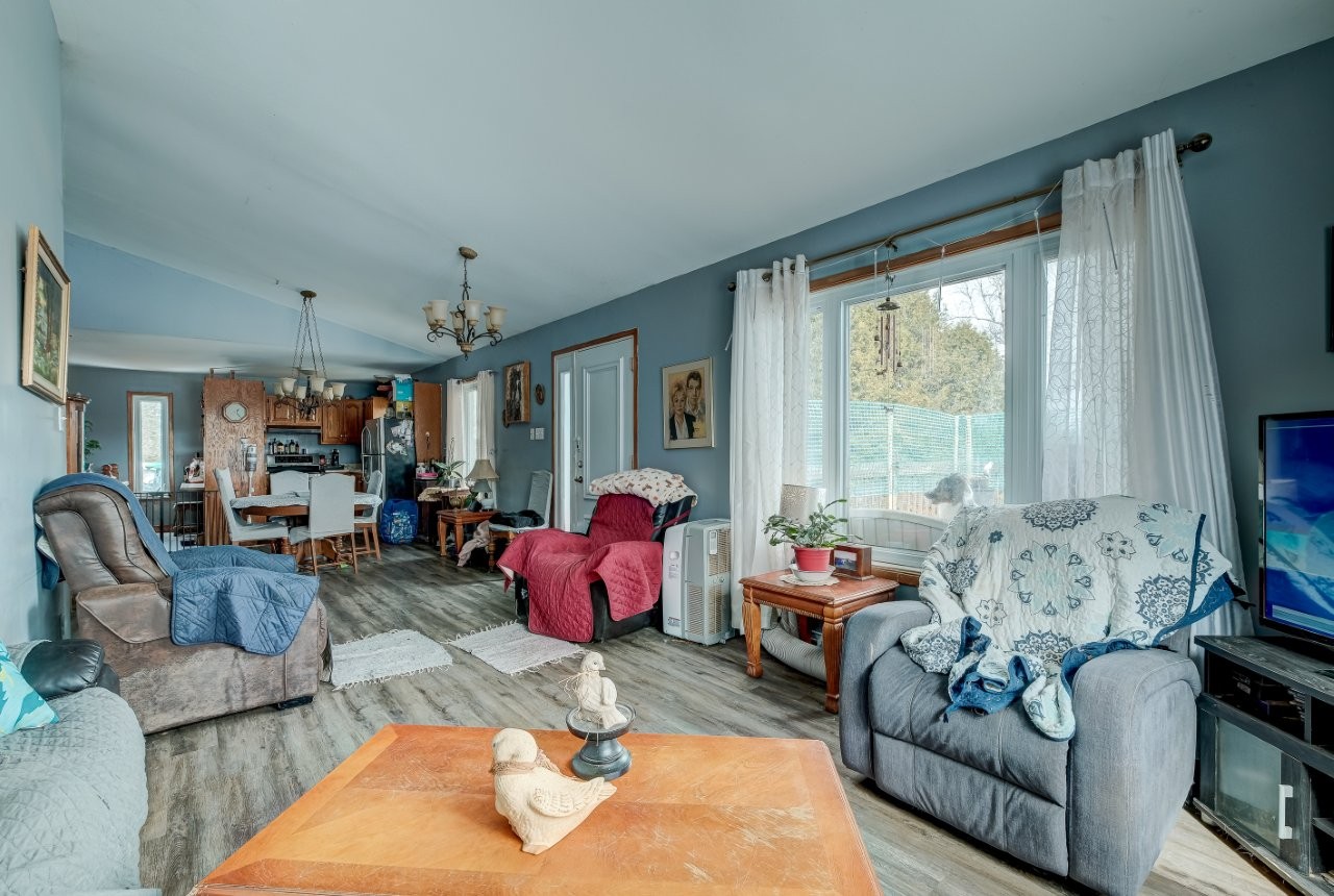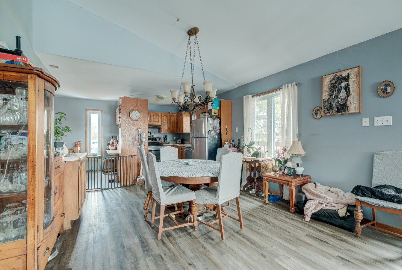 Nichée loin de la route pour une grande intimité, la résidence principale propose quatre chambres, une aire ouverte regroupant la salle à manger et le salon, ainsi qu’un sous-sol aménagé avec entrée extérieure. La vue panoramique ajoute une touche de sérénité à ce lieu enchanteur.