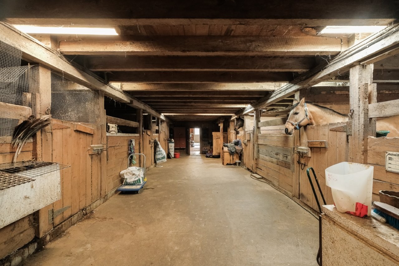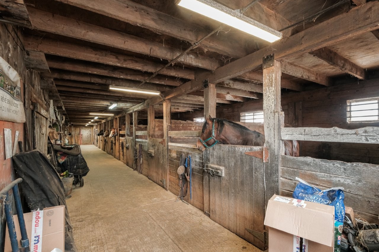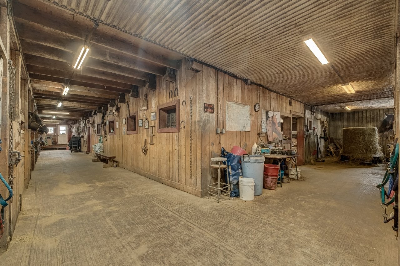 Le domaine équestre compte une écurie spacieuse de 55 x 90 pieds, conçue pour répondre aux besoins des passionnés d’équitation, avec 17 box tout équipés, une douche pour chevaux et un écureur à fumier.