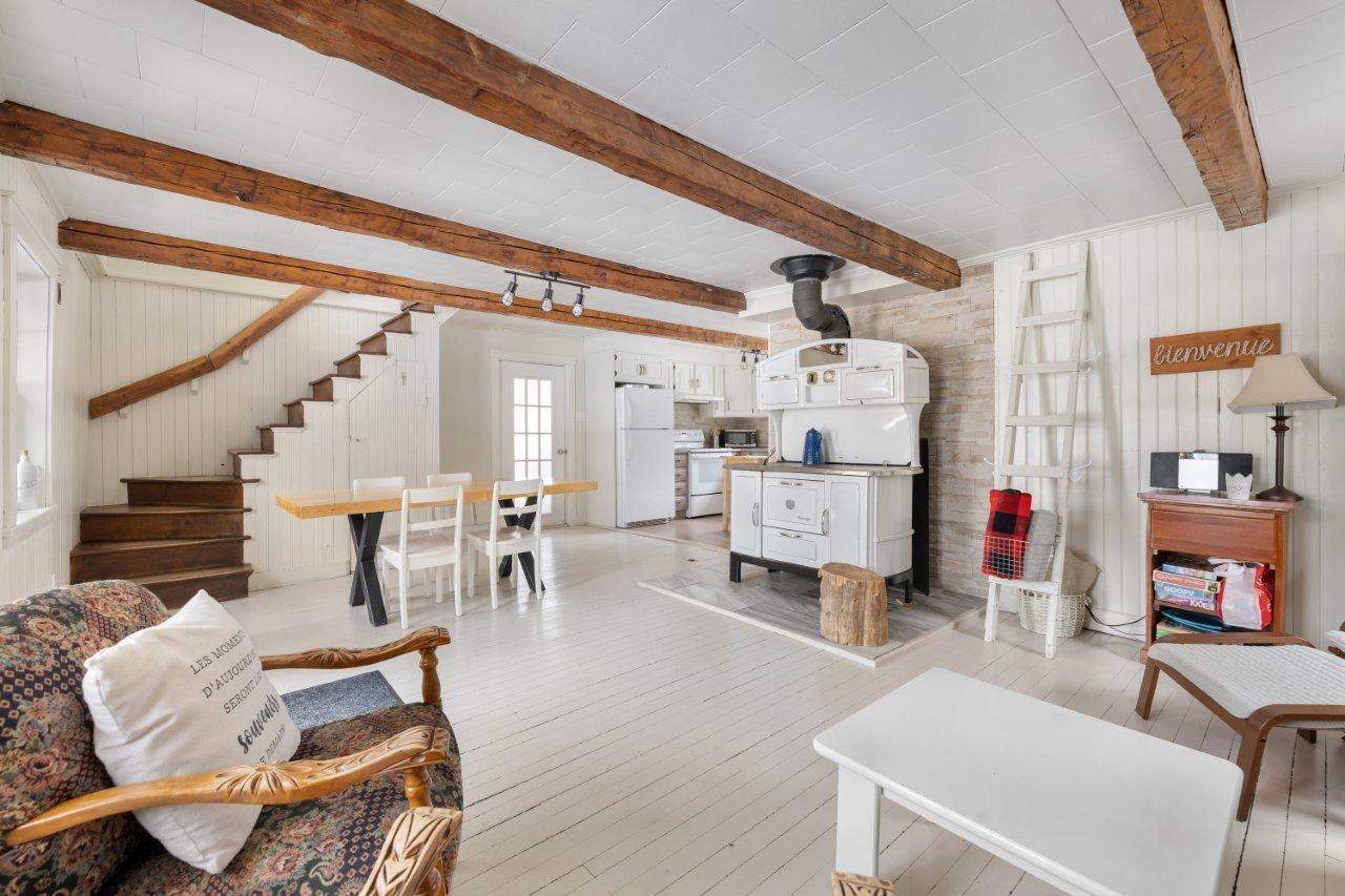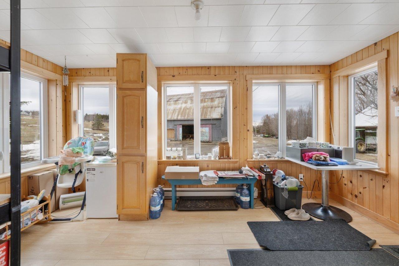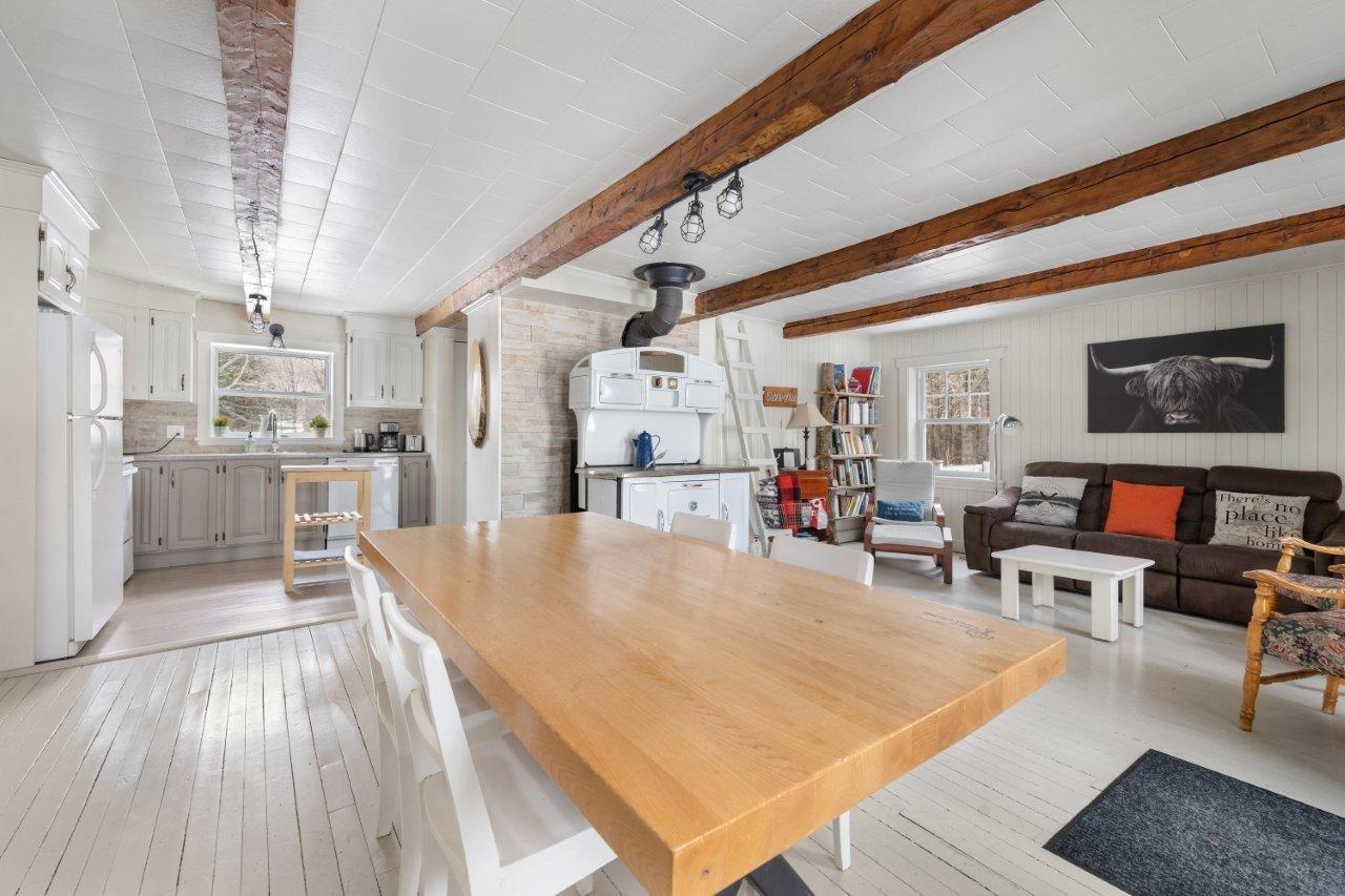 Nichée au bout de l’entrée de plus de 600 pieds, la maison propose une ambiance chaleureuse et conviviale. Une grande galerie extérieure permet de profiter pleinement du paysage et du calme environnant. À l’intérieur, on retrouve un hall d’entrée de type mudroom, pratique pour la vie à la campagne. La salle à manger est agrémentée d’un poêle à bois, apportant une touche de confort. La maison est vendue avec plusieurs meubles et est déjà aménagée pour accueillir des visiteurs, offrant une belle flexibilité selon vos projets. La Rivière du Pin qui coule à proximité de la maison ajoute un attrait naturel indéniable, que ce soit pour la détente, la baignade ou la pêche en saison.