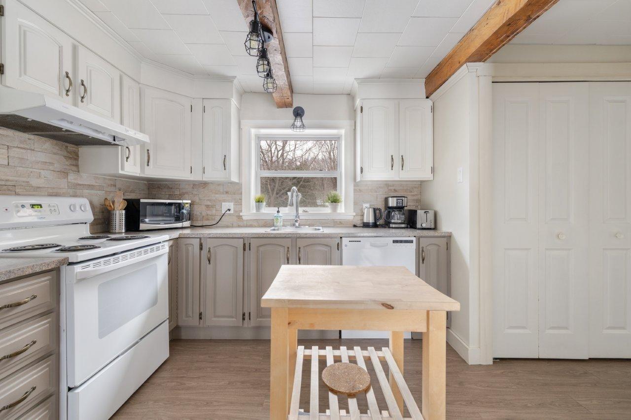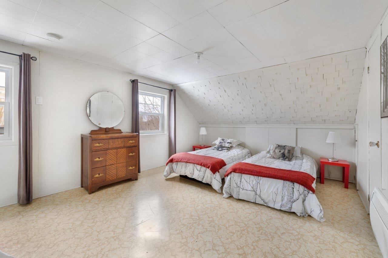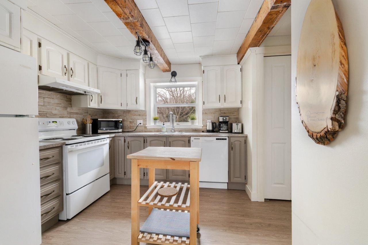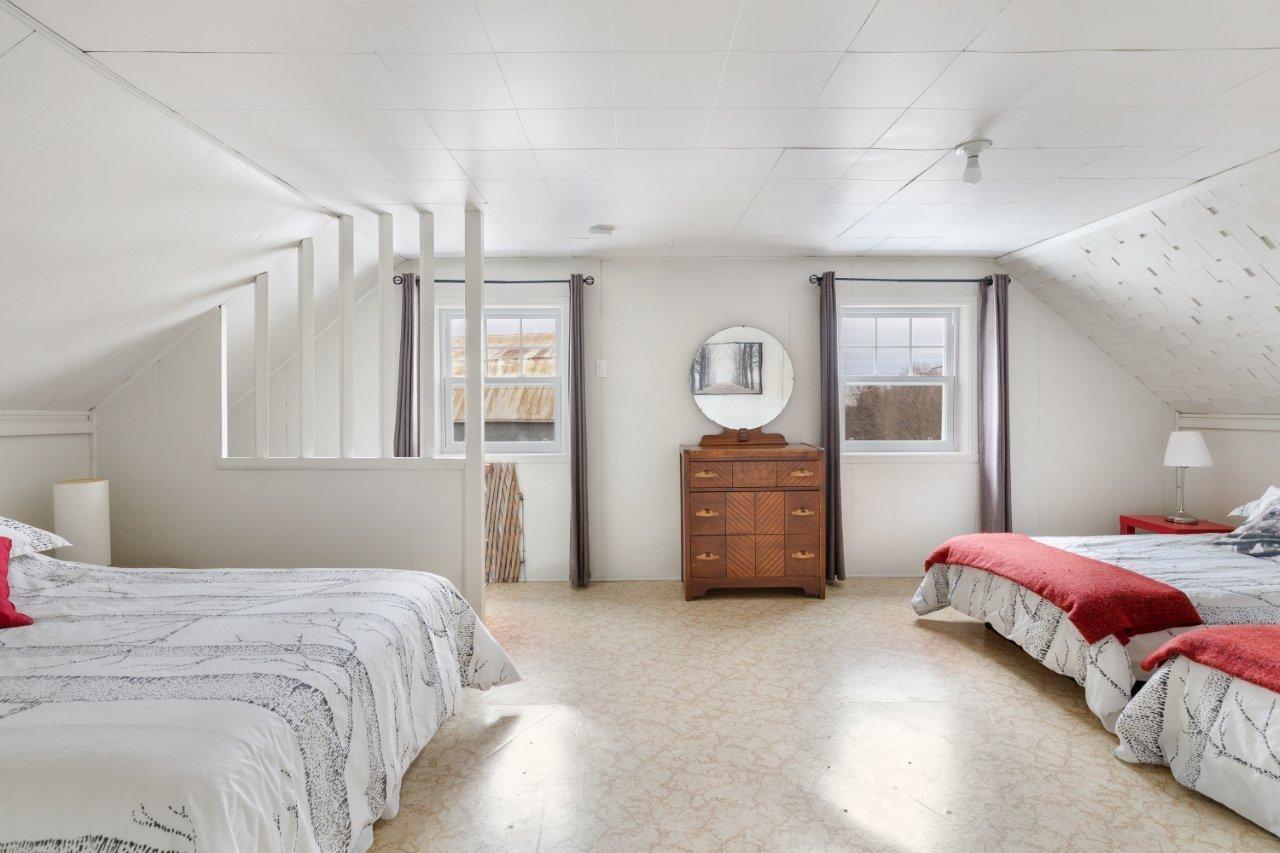 Nichée au bout de l’entrée de plus de 600 pieds, la maison propose une ambiance chaleureuse et conviviale. Une grande galerie extérieure permet de profiter pleinement du paysage et du calme environnant. À l’intérieur, on retrouve un hall d’entrée de type mudroom, pratique pour la vie à la campagne. La salle à manger est agrémentée d’un poêle à bois, apportant une touche de confort. La maison est vendue avec plusieurs meubles et est déjà aménagée pour accueillir des visiteurs, offrant une belle flexibilité selon vos projets. La Rivière du Pin qui coule à proximité de la maison ajoute un attrait naturel indéniable, que ce soit pour la détente, la baignade ou la pêche en saison.