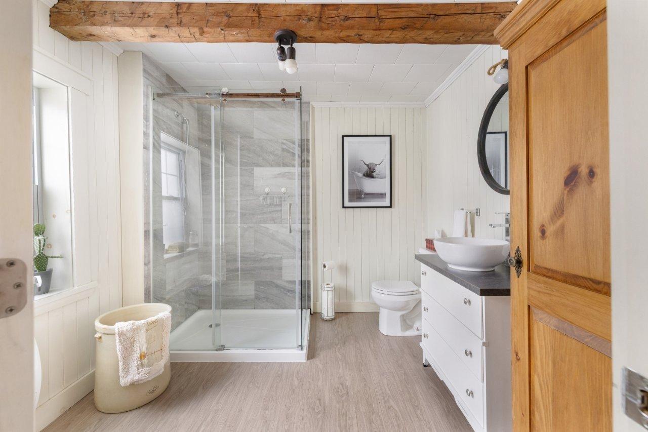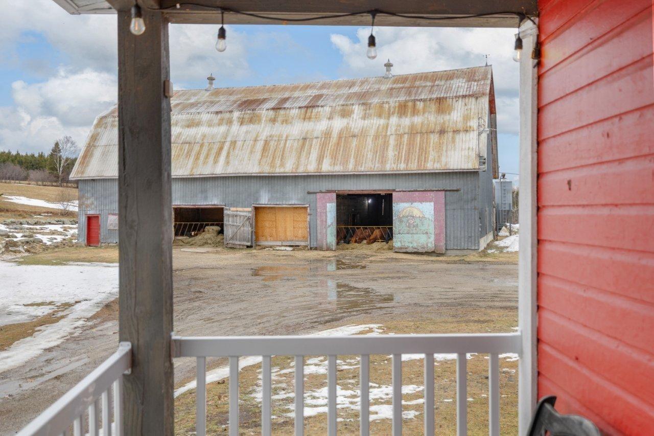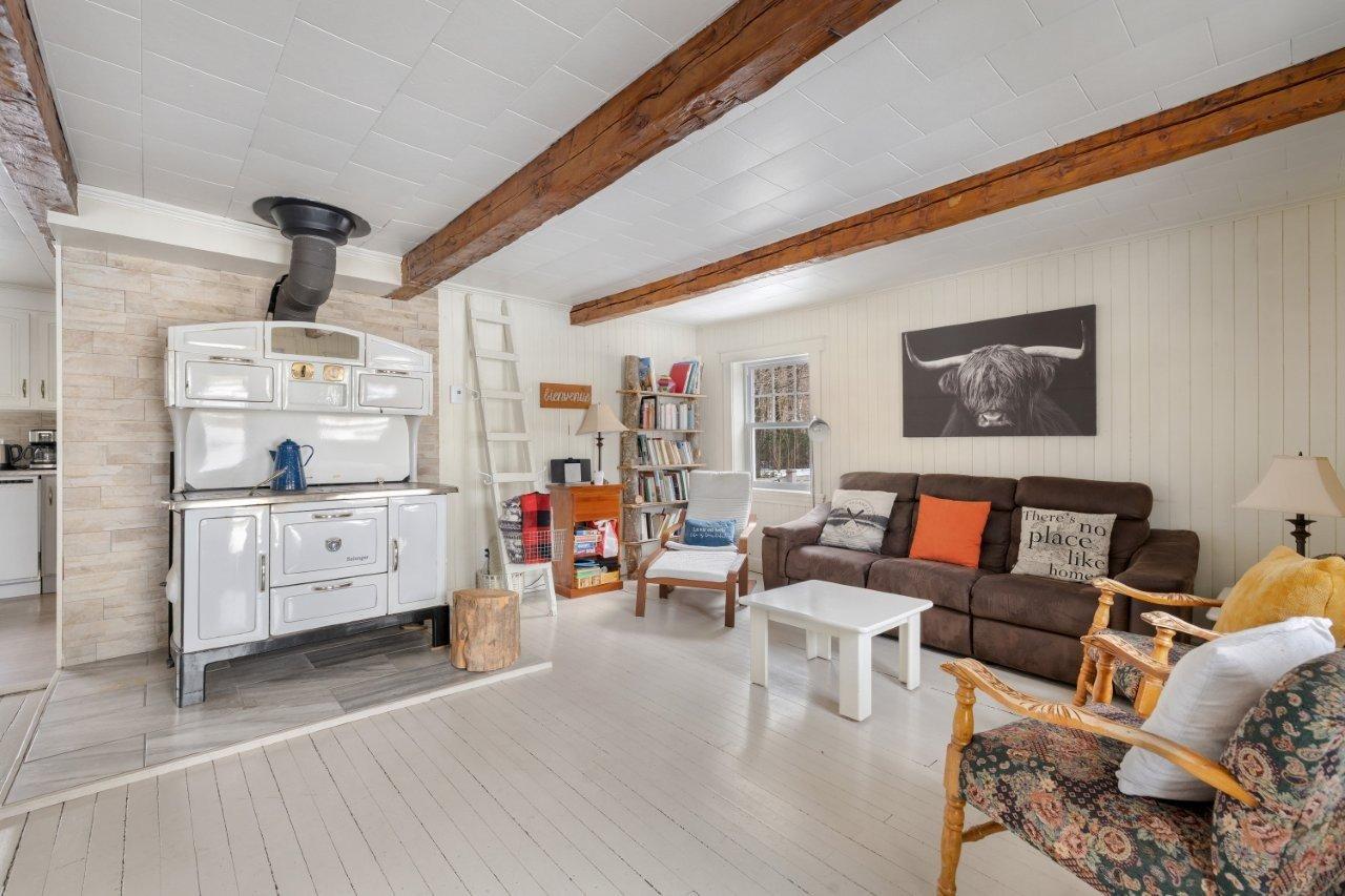 St-Philémon (Chaudière-Appalaches) : Située en retrait de la route, au bout d’une longue entrée privée, cette ferme de 166,98 acres offre un cadre de vie paisible et intime, idéal pour ceux qui souhaitent s’installer à la campagne tout en profitant d’un grand espace naturel. La propriété comprend une charmante maison de trois chambres au cachet accueillant, actuellement exploitée en location court terme et générant des revenus annuels d’environ 24 000 $. Que ce soit pour y habiter à l’année, comme résidence secondaire ou pour poursuivre l’activité locative, elle offre plusieurs possibilités.