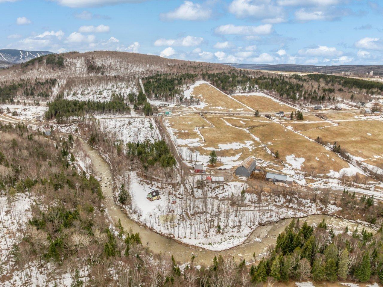 La terre se compose de 67 acres de champs cultivables dont 9,56 acres en culture de foin et 57,44 acres actuellement utilisés en pâturages. On y retrouve environ 85 acres de forêt, en plus d’être traversée par la Rivière du Pin, ajoutant un caractère unique et un environnement naturel des plus agréables. Située à seulement 8 km de la Station touristique du Massif du Sud, la propriété permet de profiter facilement d’une foule d’activités de plein air, été comme hiver.