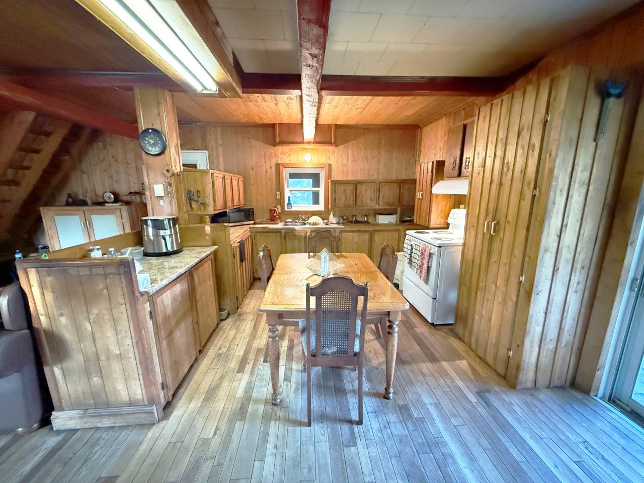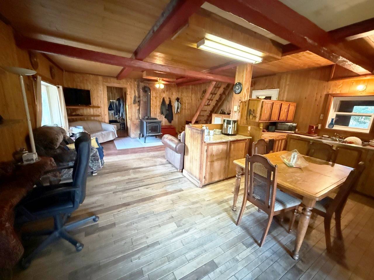 Positionnée loin de la route en toute intimité, la maison vous accueille avec sa belle galerie couverte qui habille sa devanture. Son intérieur en bois, agrémenté de poutres apparentes, dégage un cachet rustique chaleureux et offre de belles possibilités d’aménagement et de modernisation.
